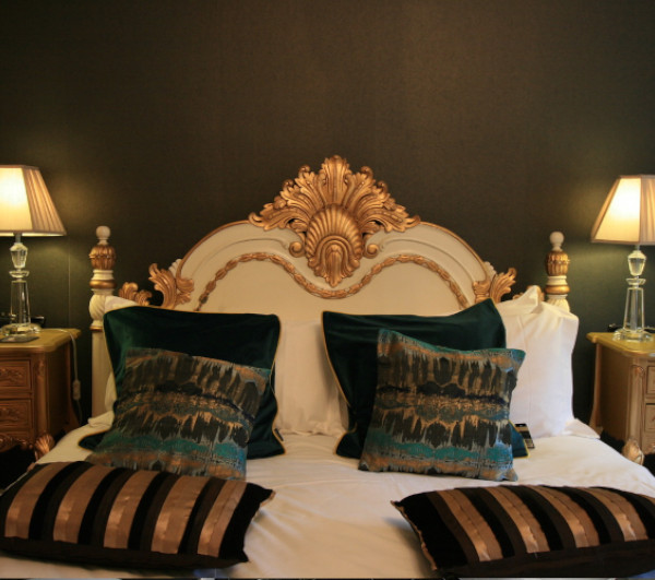 windows overlooking the garden and lake. The king size bed is of striking